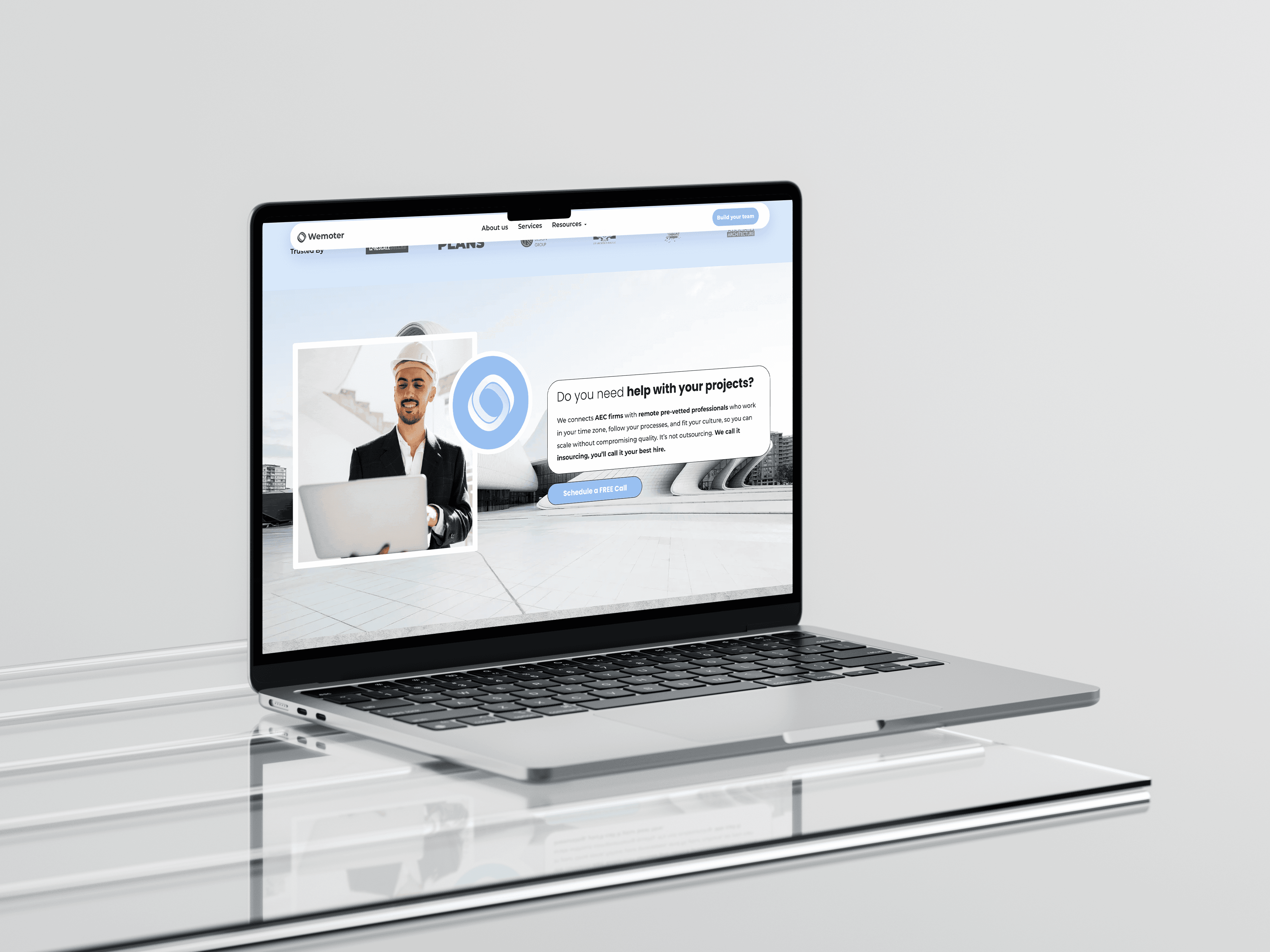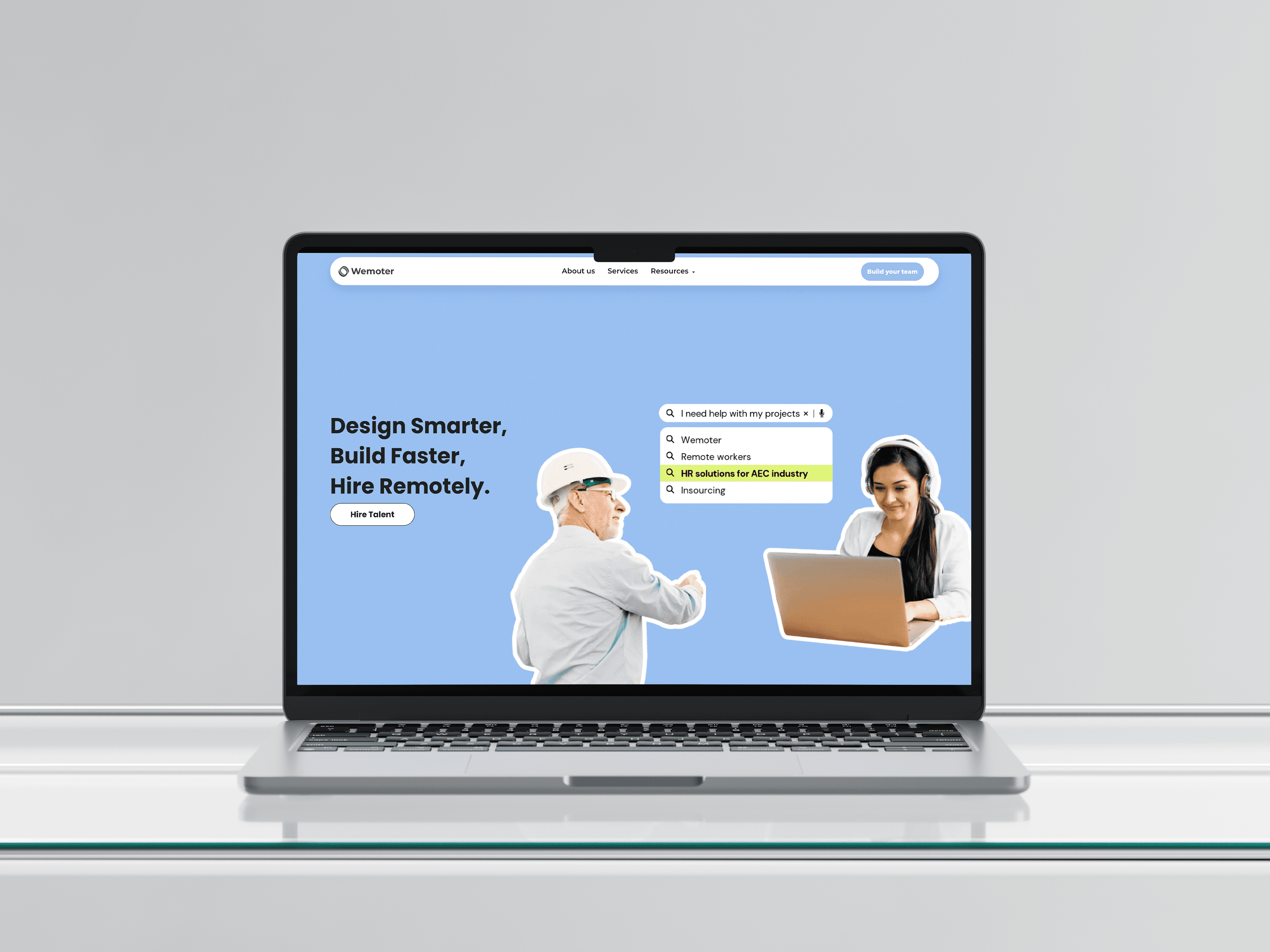 The challenge was to design a platform that could highlight Wemoter’s value to both AEC firms and remote professionals. They needed to balance clarity with professionalism, creating a modern site that showcased their mission of connecting top architects, engineers, and designers with companies looking to scale smarter.